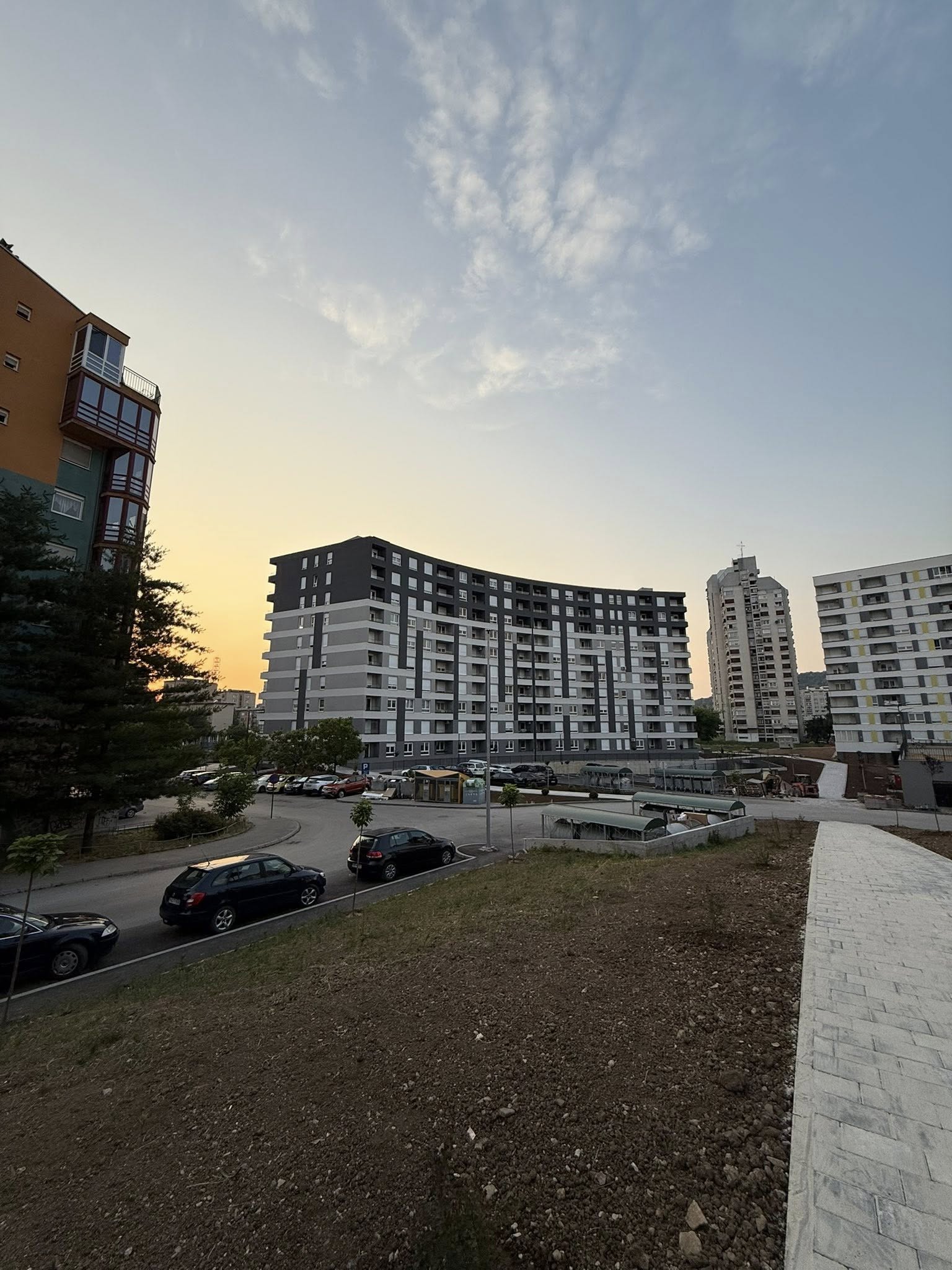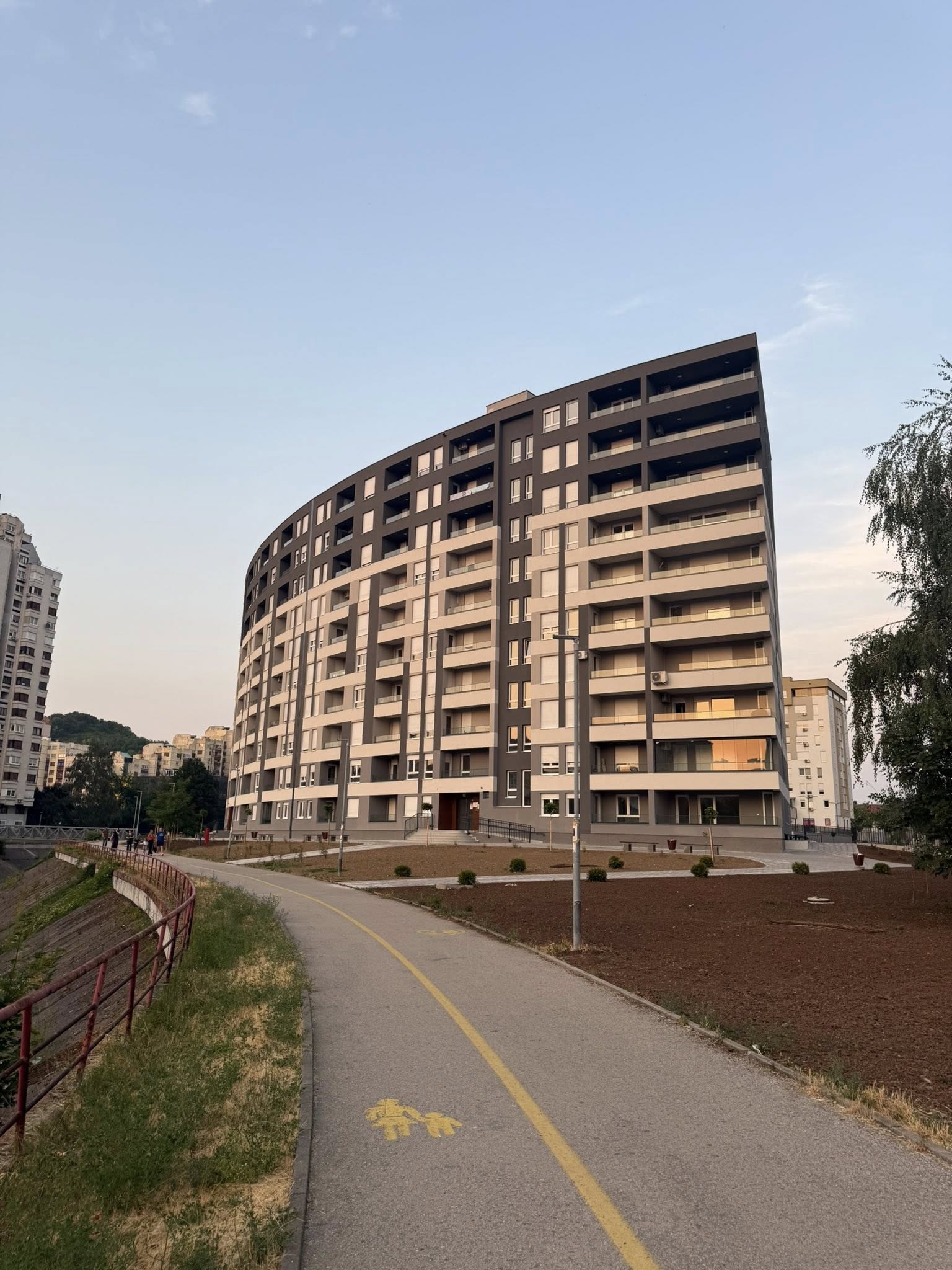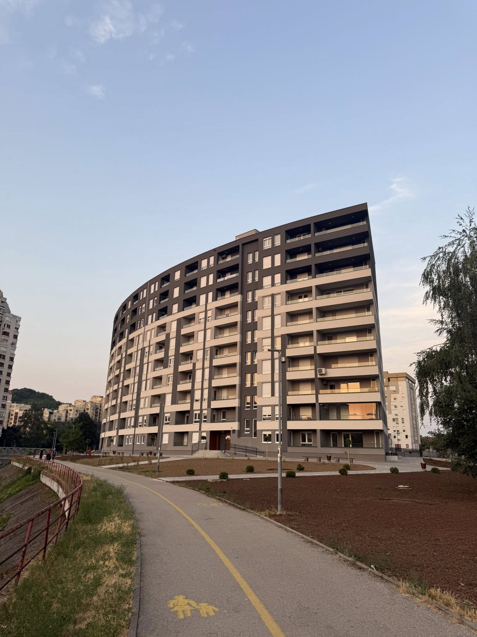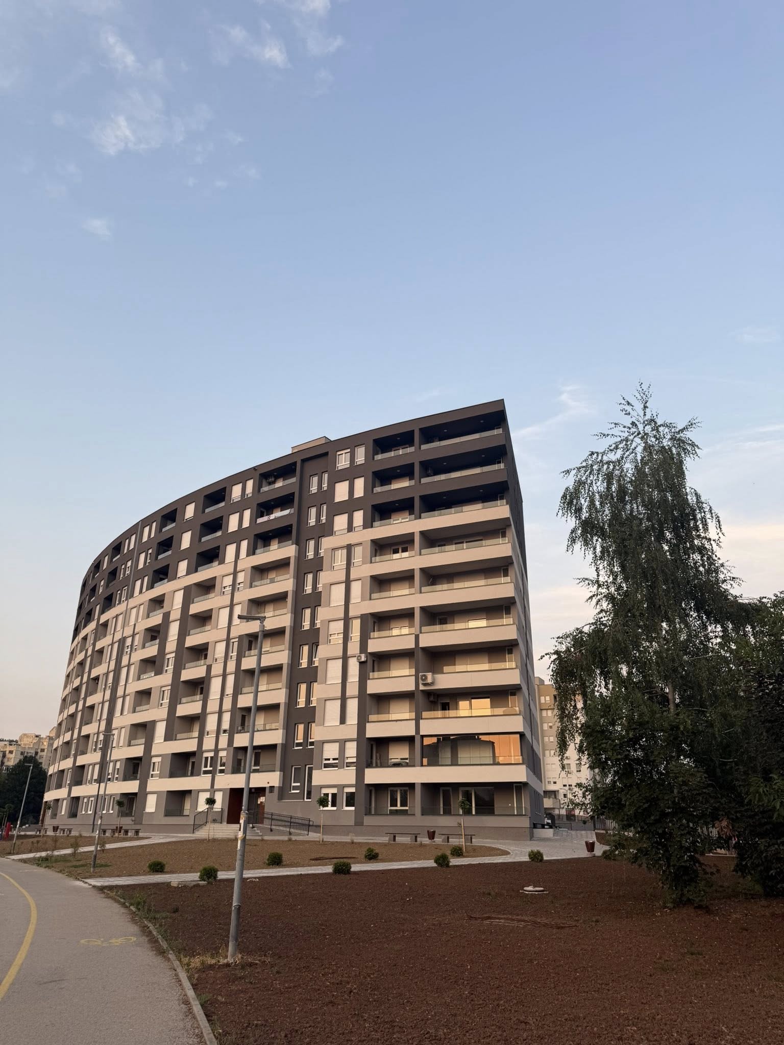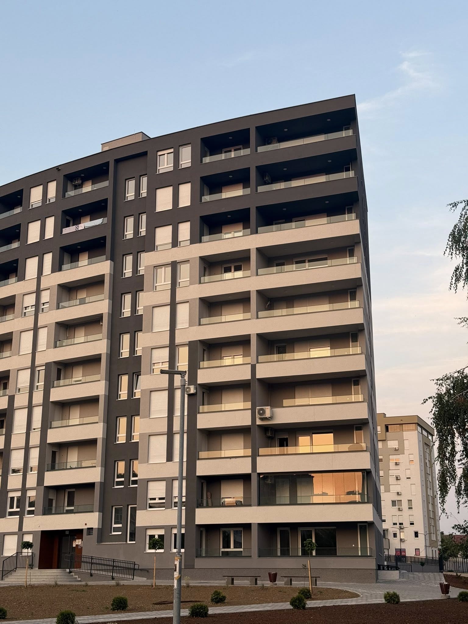 Stanari izlaze na balkon, kafa u ruci, tišina grada se lagano budi.